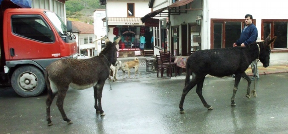 Taraklı İlçesinde Ankara caddesinde 1 haftadır başıboş dolaşan eşekler vatandaşların maskotu haline geldiler