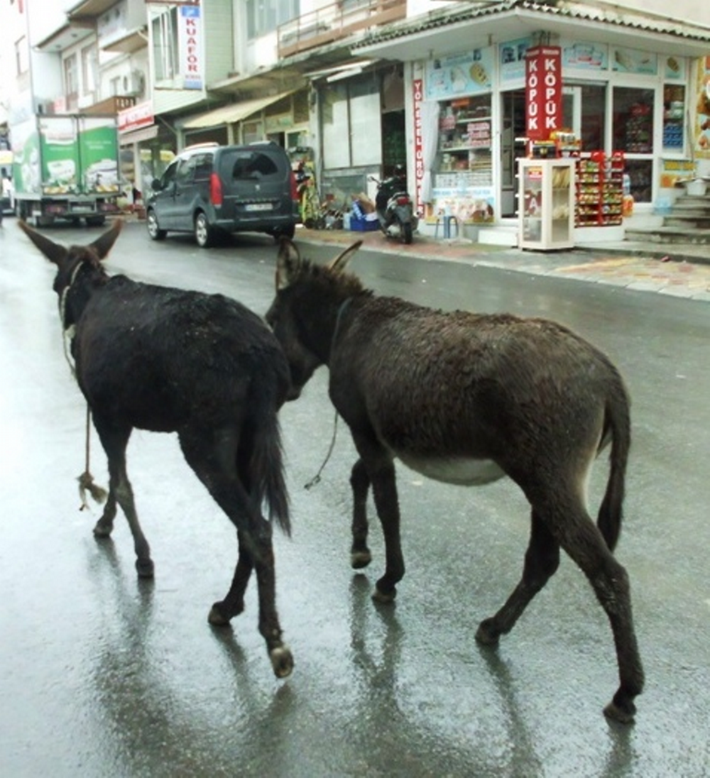 Taraklı’da yaklaşık 1 haftadır başıboş şekilde dolaşan iki eşek vatandaşların maskotu haline geldi. Ankara caddesinde gezen eşekleri gören vatandaşlar 2 eşeğin yaşlı olması nedeniyle sahibi tarafından bırakılmış olabileceğini belirtiyorlar