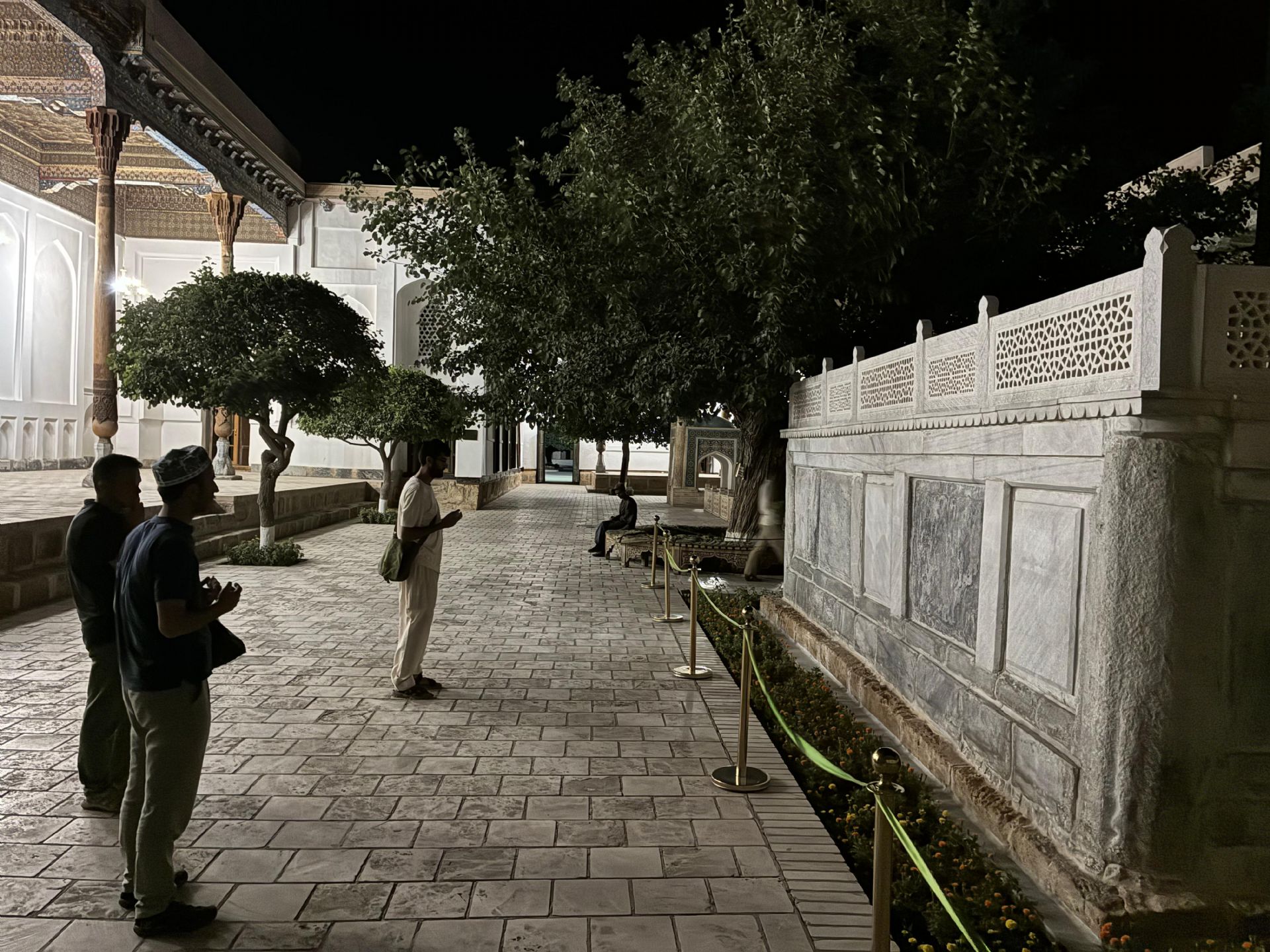 Külliyenin ana giriş kısımları kameralarla izlenmekteydi. Güvenliğin dediğini yaparak içerideki kameraları bir şekilde atlatacaktık. Birkaç yüz metre sadece arka bahçeye açılan kapıyı bulmak için koştuk. Kapıyı bulduktan sonra da ziyaretgâhın bulunduğu yere, bir o kadar mesafe daha koştuk.