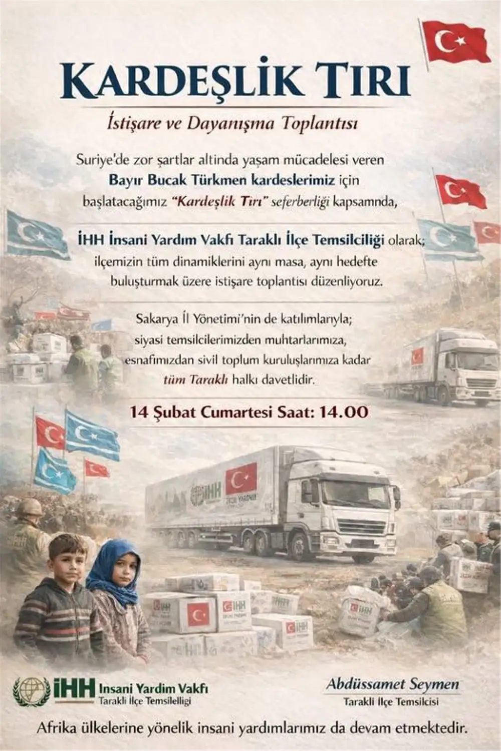 İHH Taraklı Temsilcisi Abdüssamet Seymen, tüm vatandaşları bu anlamlı dayanışmaya destek olmaya davet etti.