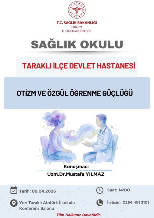 Etkinlik, 9 Nisan 2026 Perşembe günü saat 14.00’te Atatürk İlkokulu konferans salonunda düzenlenecek. Programda, otizmin erken belirtileri, özgül öğrenme güçlüğü yaşayan bireylerin desteklenmesi ve ailelerin dikkat etmesi gereken hususlar ele alınacak.